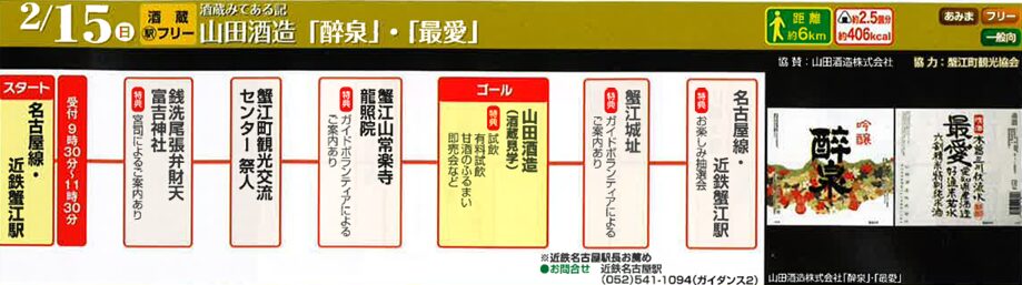蟹江山常楽寺 龍照院…山田酒造(酒蔵見学)…蟹江城址…近畿日本鉄道 名古屋線・近鉄蟹江駅