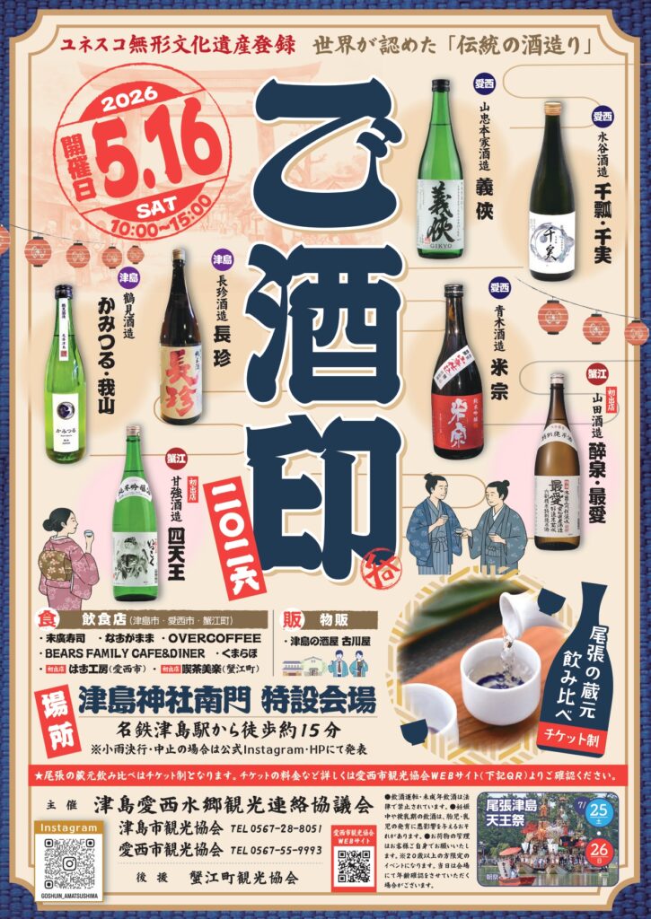 ユネスコ無形文化遺産にも登録され、世界中から注目されている日本酒を、ぜひこの機会に尾張で造られたお酒をご堪能ください!